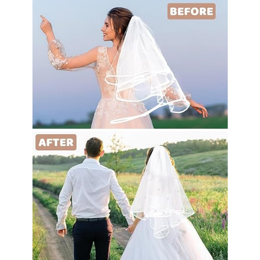 We also provide 12 pairs of fashion veil weights. These veil weights are ingeniously designed with magnetic buckles, which can easily fix and ensure that wedding veils for brides will not shift when you walk or dance. The design of magnetic buckle is not only convenient and fast, but also can be used many times without failure. These veil weights are not only practical, but also fashionable, which can enhance the overall style. Whether used to fix the wedding veil or decorate the wedding dress, these veil weights can add exquisiteness and uniqueness to your wedding style. You can choose the appropriate veil weights to match according to your own preferences and wedding dress style, and create a unique wedding style.