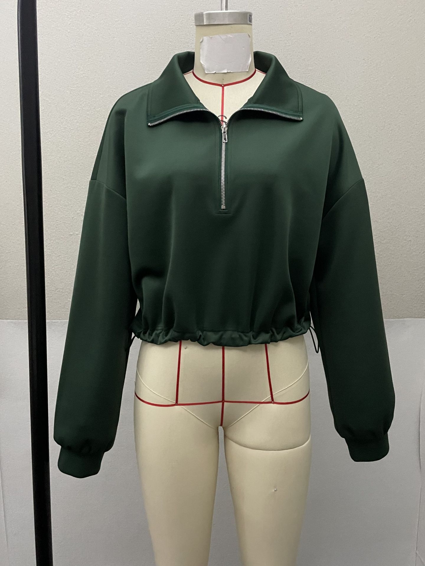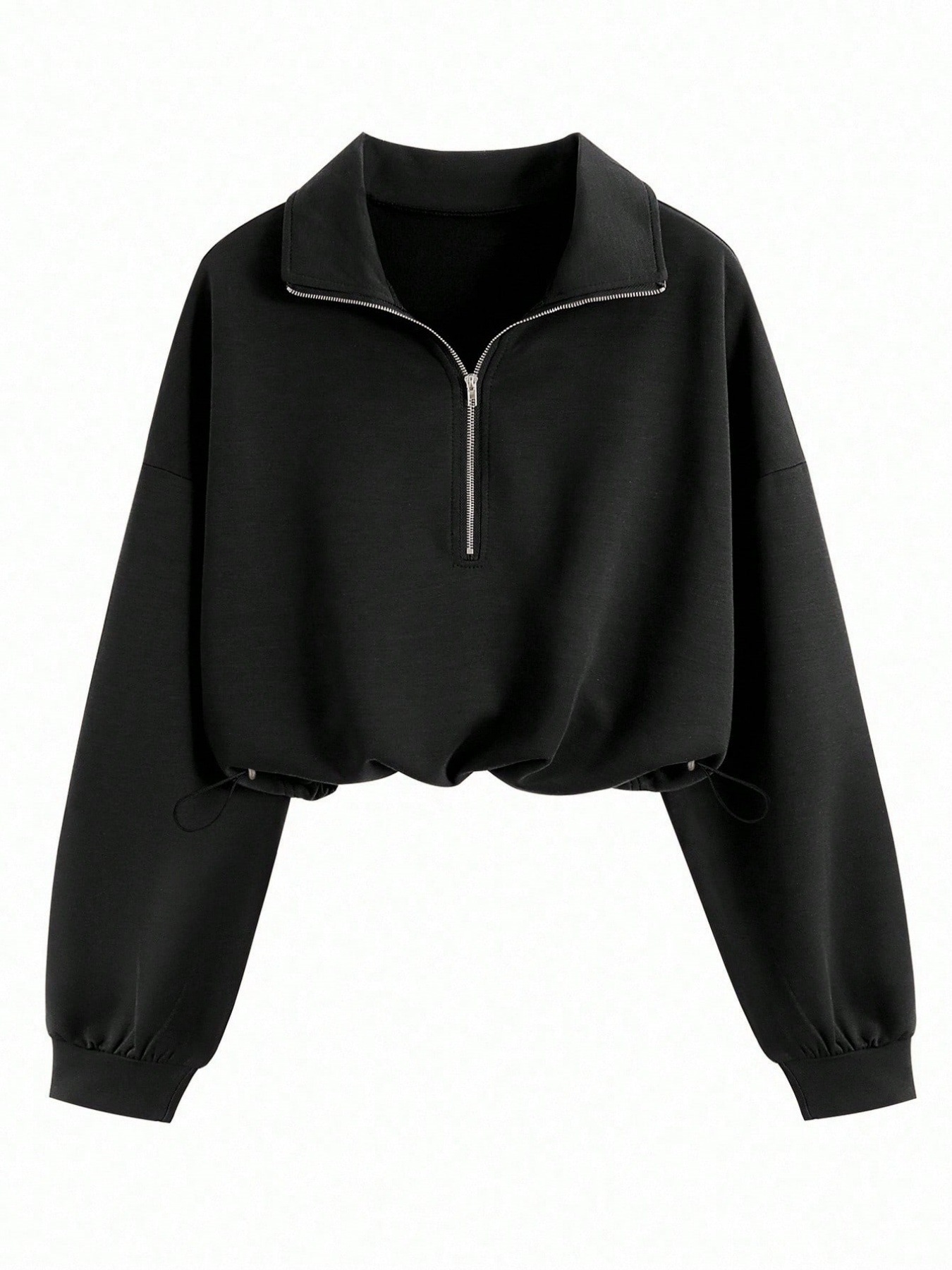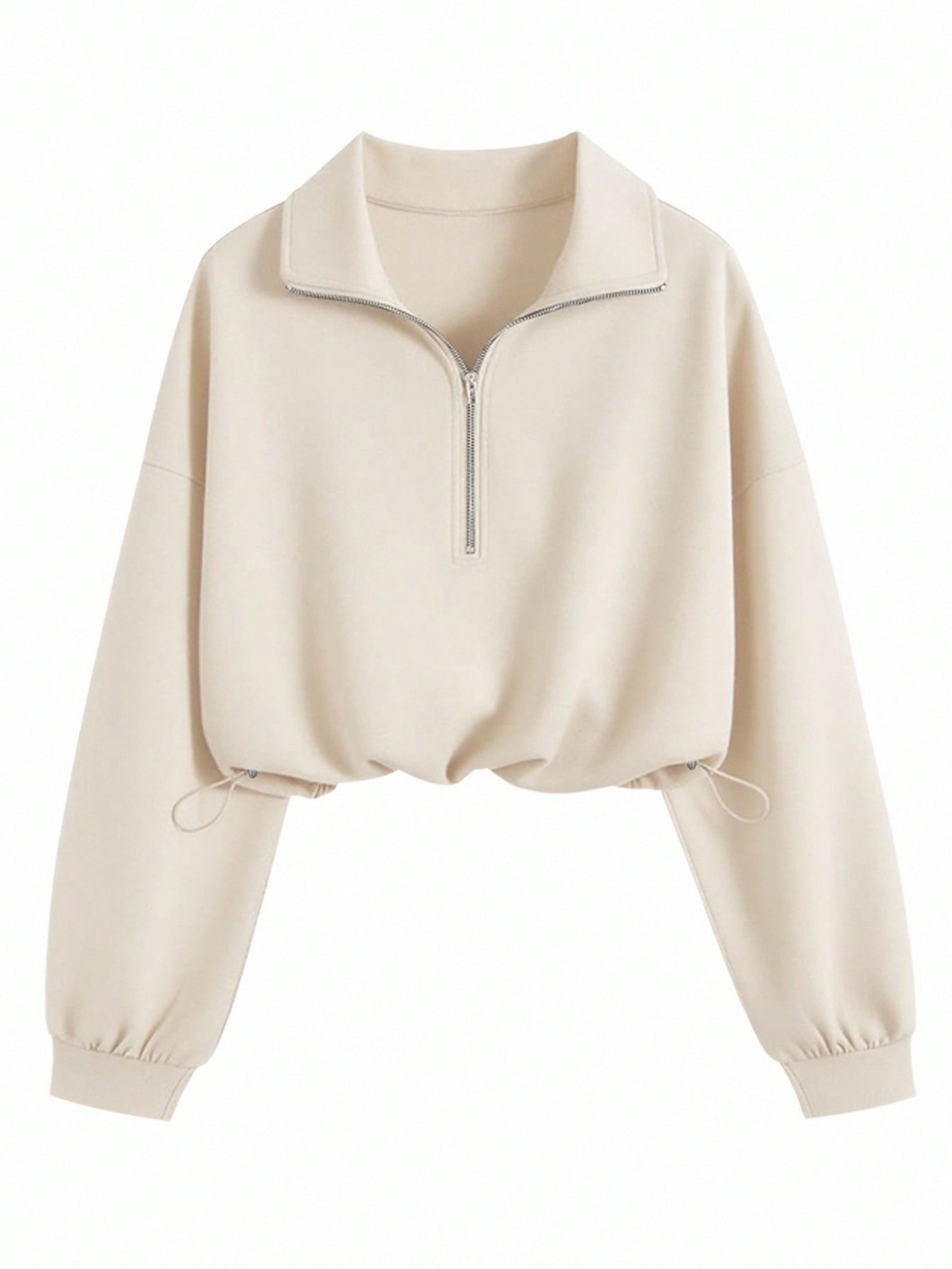 Lapel-collar Waist-cinching Long-sleeve Hoodie Jacket