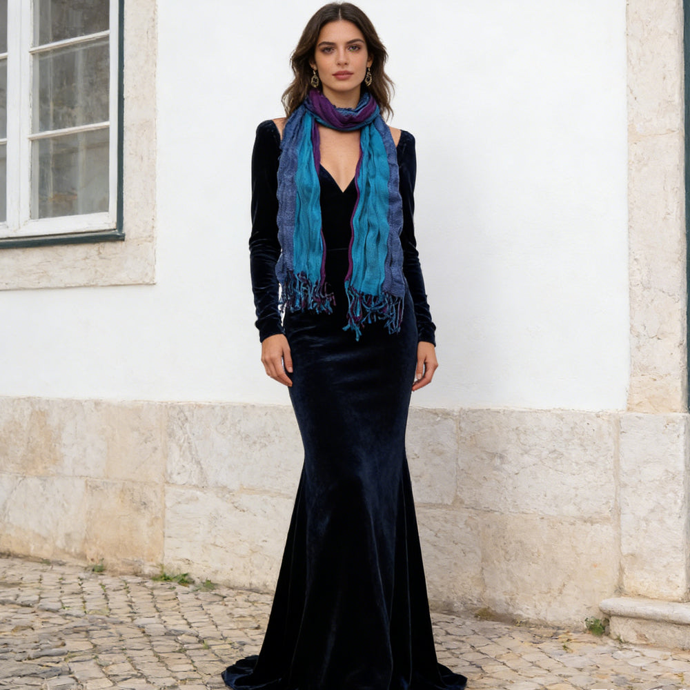 Sky Blue Dyed Crinkle Scarf,vacation,daily life,evening party,Office appropriate subtlety for women men,for Casual Outfits