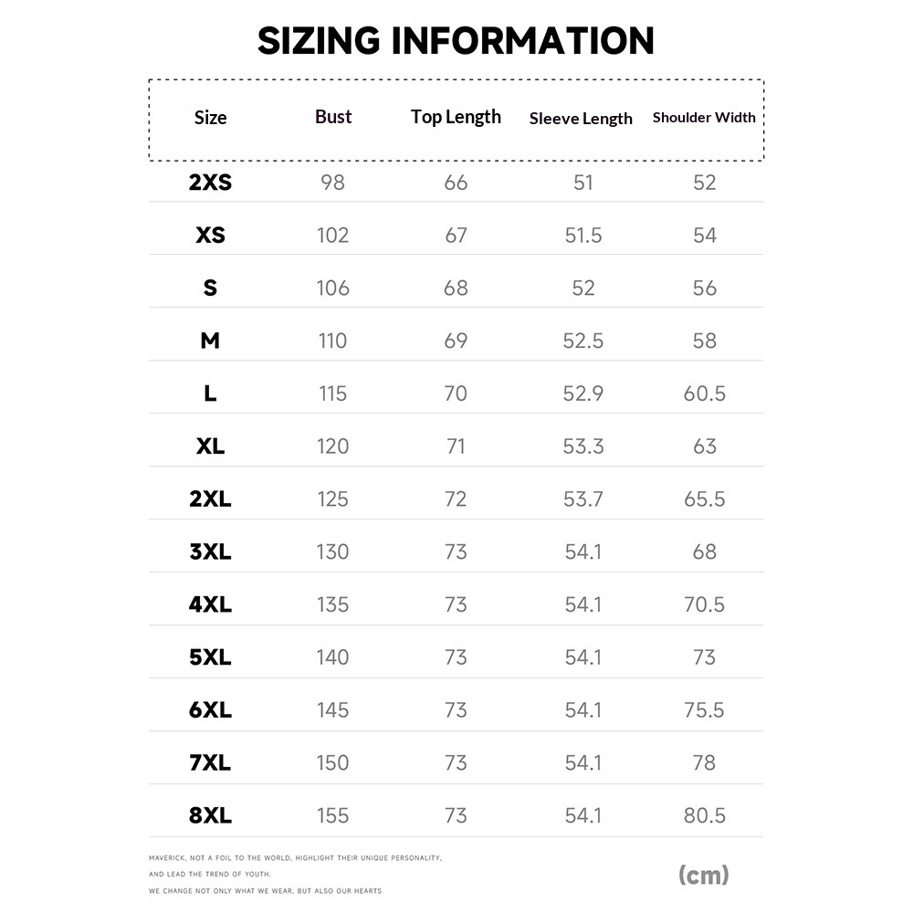 Sizes: XS, S, M, L, XL, XXL, 3XL, 4XL