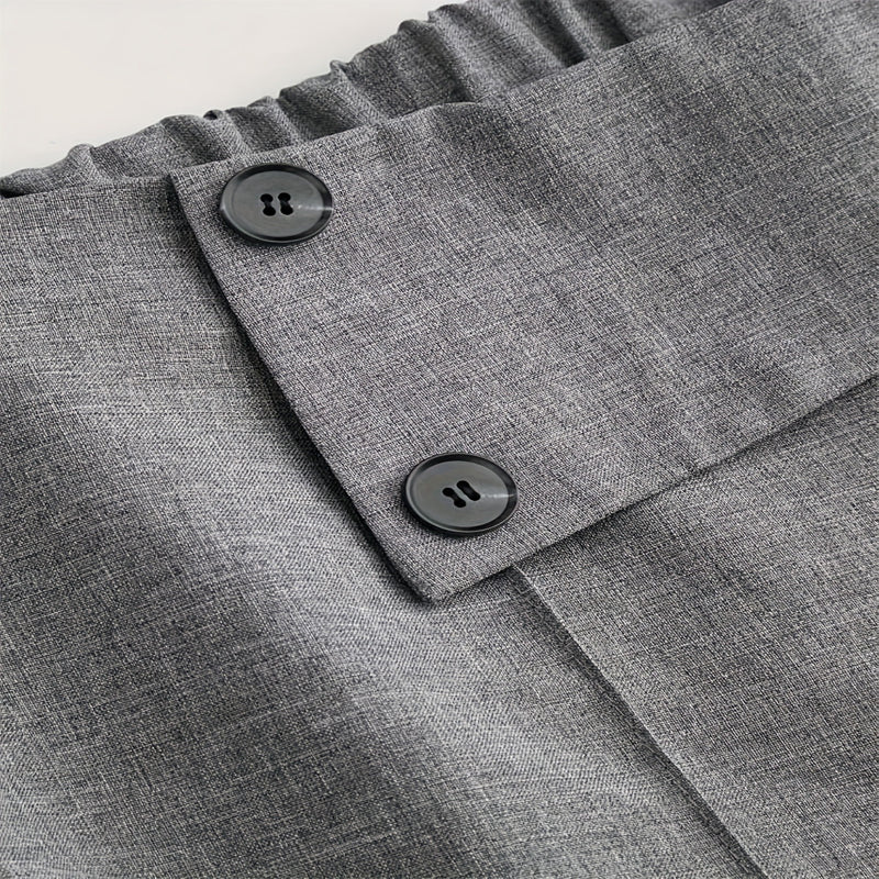 Elevate your professional wardrobe with our Women's Elegant High-Waisted Wide Leg Pants, designed to balance sophistication with contemporary style. These beautifully tailored trousers feature a flattering high-rise waist, a graceful wide-leg silhouette, and decorative button accents that add subtle detail to the minimalist design. Crafted from structured non-stretch fabric, they offer a polished look suitable for office environments while providing the comfort of a relaxed fit. Perfect for transitional seasons, these versatile pants pair effortlessly with both casual tops and professional blouses for various occasions.