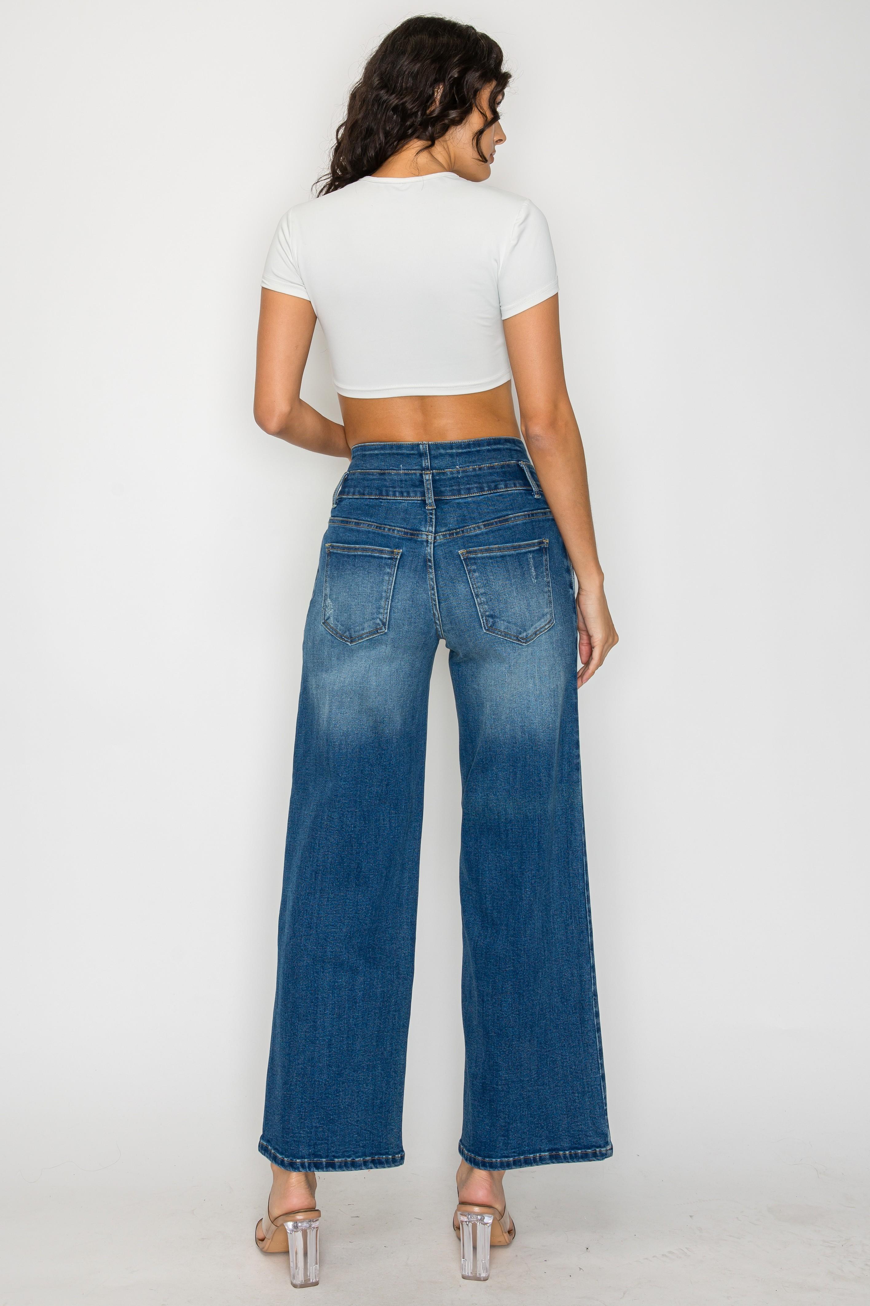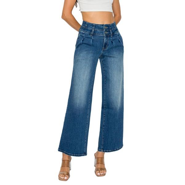 Women's Medium Blue Wide Leg Jeans| 68% Cotton Soft Slimming Style
