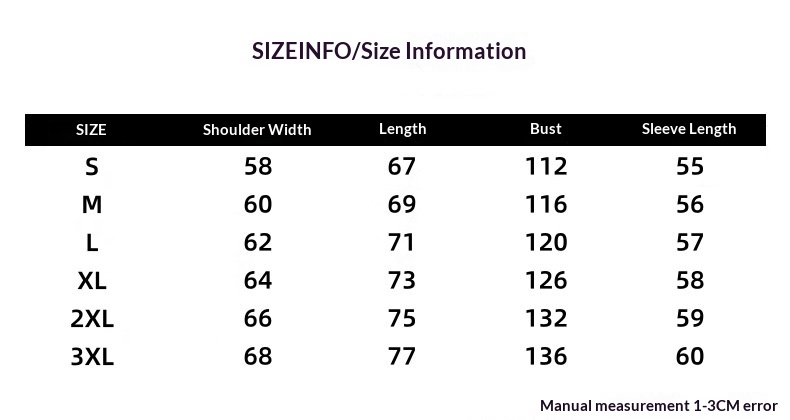 Sizes: S, M, L, XL, XXL, XXXL