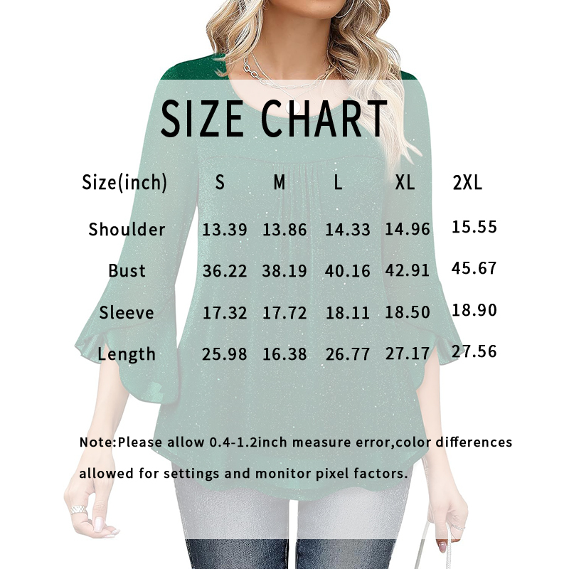 Womens Ruffle 3 4 Sleeve Sparkle Top Blouses Casual Shirts Crew Neck Glitter Night Out Tops